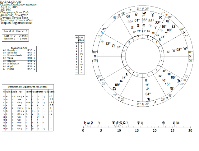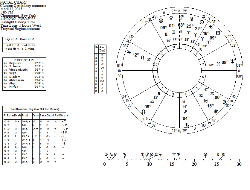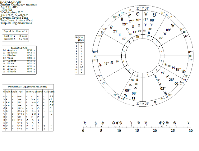 An Aries Rising chart means different significators for both Kavanaugh and Roberts. Kavanaugh's significator is now Mars, and Roberts is now unequivocally Saturn. Mars is also peregrine, so either significator challenges the notion that Kavanaugh will have a big influence on the court. Both potential significators are succedent, suggesting mean or moderate influence. Not being angular, his presence does not stand out.There is a big difference in tone, however. If Jupiter, Justice Kavanaugh will attempt to appear judicial, whereas if he is Mars, he will continue to appear as a fighter. In either case, he will find it difficult to lead.